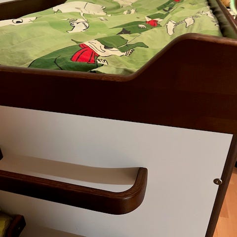 Ihanin Numero74 lasten camp daybed lastenhuoneeseen päiväuni-tai lukupaikaksi. Tämä oli siis niin ihana meidän lastenhuoneessa, mutta nyt lapset kasvaneet tästä jo ohi. Joitakin käytön jälkiä on ja jokunen tahra. En ole irrottanut rungosta pesua varten, vaan pyyhkäissyt pinnalta ainoastaan. Pidettiin tässä aina pieniä patjoja ja peittoja päällä niin kuin tuossa ensimmäisessä kuvassa näkyy. Tästä seuraavalle pienelle ihana satumainen lisä huoneeseen.