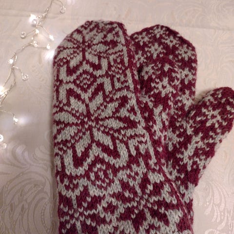 Myydään uudet, Isoveli-langasta käsintehdyt lapaset, väri valkoinen. Kokeneen neulojan siistiä käsialaa. Kokonaispituus noin 25 cm, leveys peukalon alta noin 9 cm.