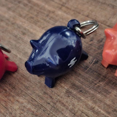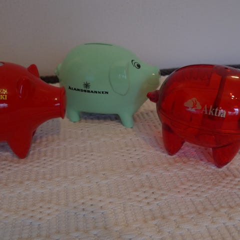 Kirkas hyväkuntoinen possu pankki. Lukko ehjä