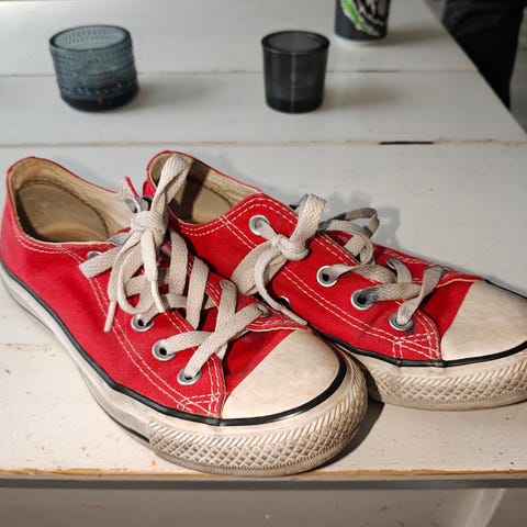 Hopeiset Converset. Kulumat näkyvät kuvissa.