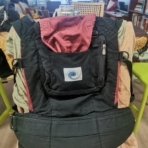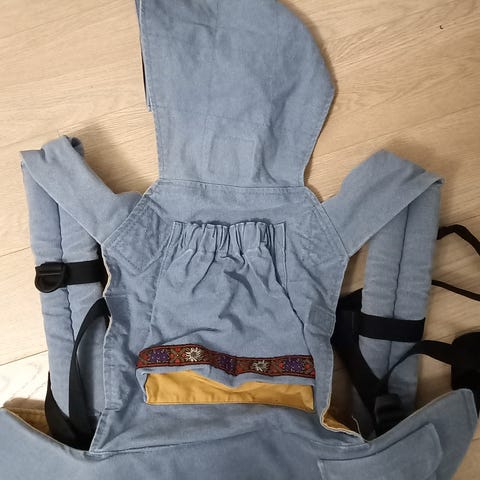 Beigen värinen Ergo baby merkin kantoreppu. Hyvät säätöremmit ja lapsen päälle saa kätevästi tuulen-/aurinkosuojan. Edessä tasku jossa saa kätevästi kulkemaan avaimet,puhelimen ym.