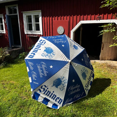Tummansininen automaattinen uusi sateenvarjo Muumien ystävälle. Hyvä vaikka joululahjaksi. Hillity sävy pienellä twistillä Muumien kanssa.