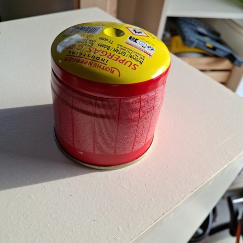 Jetboil Jetpower retkikaasu kierreventtiilillä, 230g sisältö alunperin, arvioin että toisessa hieman vajaa puolet jäljellä ja toisessa yli. Valmistusvuosi 2018 mutta uskoisin että palaa vielä nätisti. Molemmat yhteensä 1€, nouto Kouvolasta.