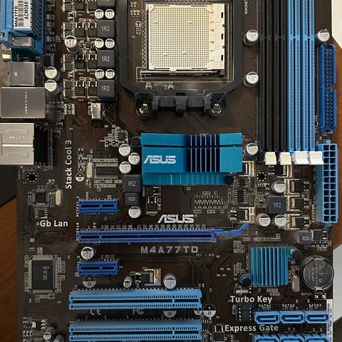 MSI 970A-G43 emolevy tukee AM3+ prosessoreita. Emolevyssä on useita liitäntöjä ja jäähdytyselementtejä. Mukana on myös Antec Earthwatts 500W virtalähde ja HyperX muistit. Emolevy soveltuu pöytätietokoneisiin ja tarjoaa perusominaisuudet keskitason kokoonpanoihin. En tiedä näistä mitään itse purkaamalla ja hintaa tarjoamalla saa tulla hakemaan osia tai koko kone kerralla