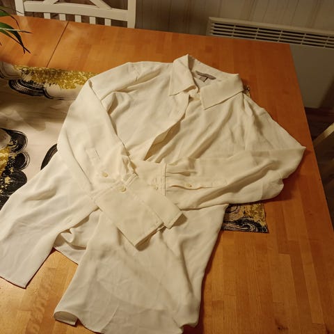 Myydään naisten siisti paitapusero. Koko M, siisti käytetty kunto. Yläosassa napit, leveät hihansuut.
