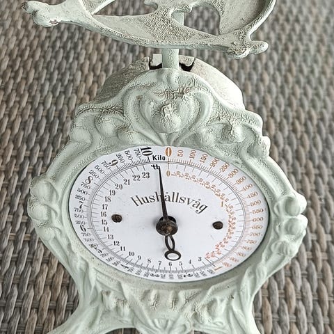 Ehjä ja toimiva 50-60 luvulta. Exakta Ricosta metallinen keittiövaaka.