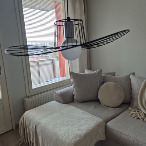 Iso kattovalaisin, lamput ripustetaan yksitellen kattoon, saa roikkumaan ja millaiseen muotoon haluaa. Ns hämähäkki valaisin, googlesta löytyy hyvin mallia, minkälainen katossa.