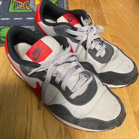 Nike Air Forcet, koko 40. Värit musta, valkoinen ja punainen. Materiaali keinonahka ja kangas. Kengät ovat käytetyt ja muuten täysin ehjät, mutta yhdessä kengässä kankaassa pikku repeämää (näkyy kuvassa). Voi korjata esim. vaatelaastarilla. Nouto Kempeleestä tai postitus jolloin kulut (8,9€) ostajalle.