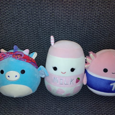 Squishmallows pehmolelut, lasten lelut, erilaisia eläinaiheisia hahmoja, pehmeä materiaali, sopii lasten leikkeihin ja keräilyyn. Voidaan myydä myös erikseen /yksitellen. 15€ kaikki tai 6€/kpl