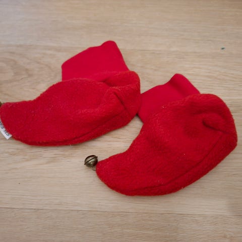 Hyväkuntoiset tonttutossut vauvalle. Tossujen päässä kulkuset. Kerran käytetty.