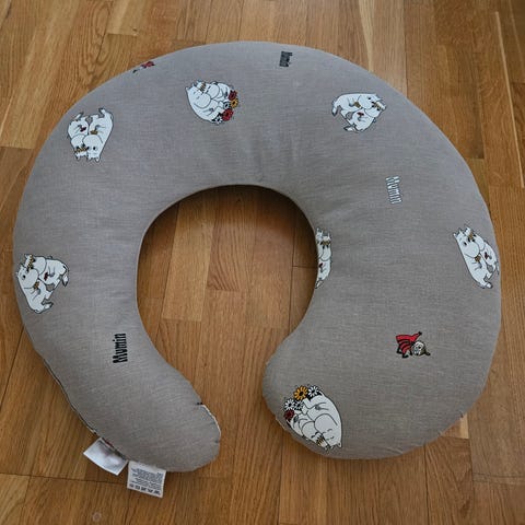 Myydään siisti Muumikuvioinen imetystyyny. Hyvä tuki imetykseen ja vauvan sylissä pitämiseen. Päällinen vetoketjulla ja pestävissä oleva. Kunto hyvä, ei tahroja tai hajuja.
