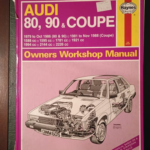Myynnissä klassinen Haynes-korjausopas, joka kattaa Audi 80-, 90- ja Coupé -mallit vuosilta 1979–1988. Kirja sisältää yksityiskohtaiset ohjeet, räjäytyskuvat, sähkökaaviot sekä vaiheittaiset korjaus- ja huolto-ohjeet. Erinomainen apu niin projektiautolle, kunnostukseen kuin yleiseen auton ymmärtämiseen.