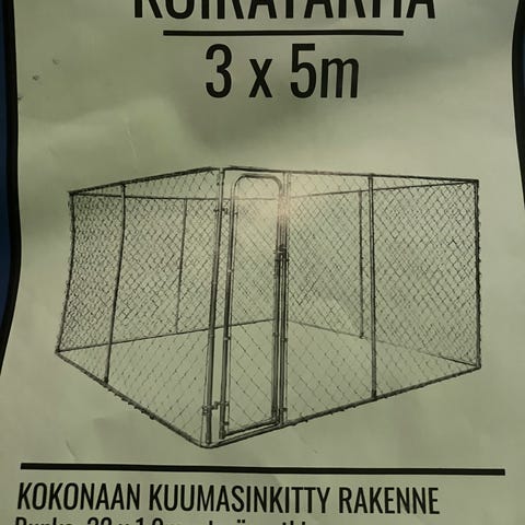 Sinkitty putkirunkoinen koiratarha n. 3,7x2,5m korkeus 180cm.