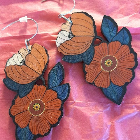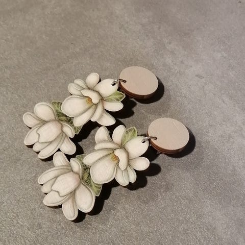 Myydään upeat Mia Minervan Grapes koivuvanerikorvakorut.