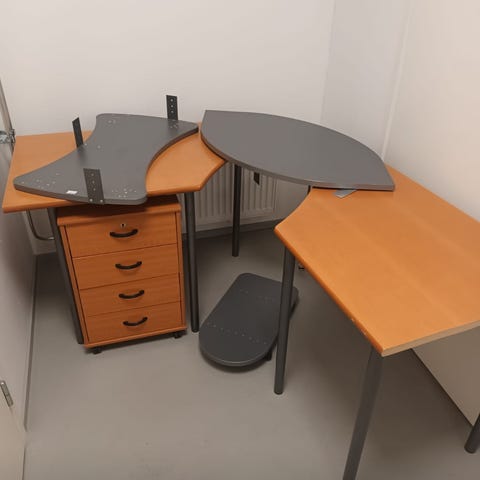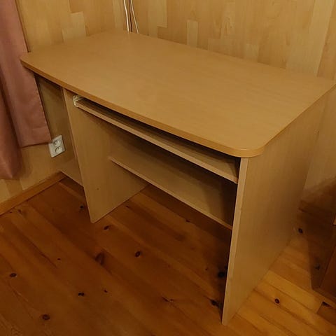 Myydään tietokone pöytä. Näytön molemmille puolille saa samanlaisen hylly tason ja alas kans. Kulumaa on mutta on tukeva.
