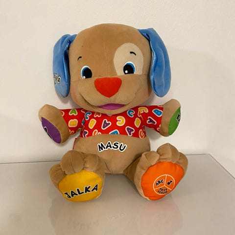 Hyväkuntoinen ja toimiva Fisher Price Puppy. Toimii paristoilla. Puhuu ja laulaa.