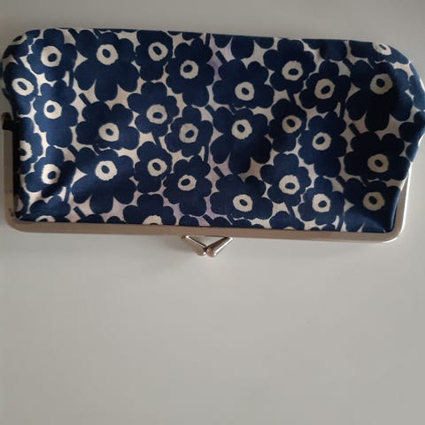 Marimekon kankaasta ompelijan tekemät topatut patalaput ripustusrenksuin. Koko n. 22 x 22cm. Välissä myös tukikangas.