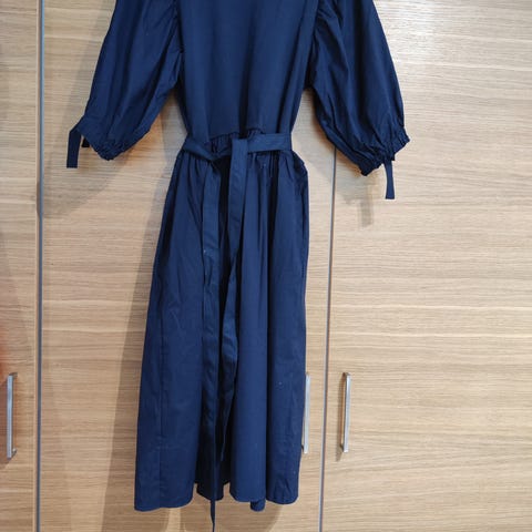 Myyydään käyttämättä jäänyt Kuusaman XS-koinen mekko, lappu vielä kiinni. Reilu koko, sopii hyvin myös S-kokoiselle. Materiaali puuvillasatiinia, joukossa hieman elastaania. Mukana irrallinen vyö. Avautuva nappilista etuosassa, ei ulotu alas asti. Pohjaväri hyvin tumman vihreä, erottuu huonosti kuvasta.