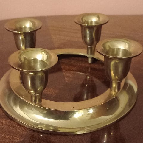 Vanha kynttilänjalkapari. Tyylikäs messinkinen. Toisen jalusta vähän väåntynyt, mutta ei jää näkyviin, kun asettelee taakse. Korkeus noin 9,5 cm. Yhteishinta. Nouto tai postitus.