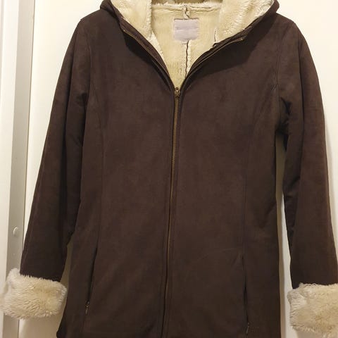 Uusi käyttämätön talvitakki. Väri on tumma pinkki (kuva vääristää värin). Paljon taskuja. Hinta 45 euroa.