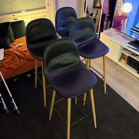 Kaksi samanlaista tuolia,leveys/syvyys 40/40cm, korkeus/92/64cm. Hinta 35 eur/kpl.