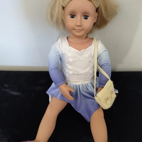 Our generation -merkkinen nukke. Erittäin vähän leikitty, hyväkuntoinen. Nuken potta kaupan päälle. Kuvasta puuttuvat pinkki toppaliivi ja ruskeat saappaat.