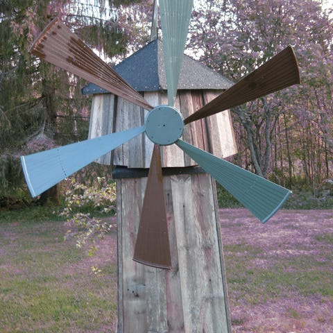 Kevyesti pyörivä käsintehty tuulimylly. Korkeus noin 120cm.