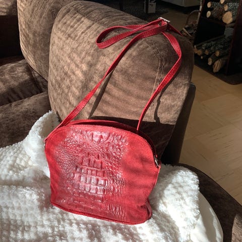 Nahkalaukku, nahkainen, nahka, italialainen, Italia, klassinen, crossbody, nahkaa, kirkkaanpunainen, olkahihnallinen