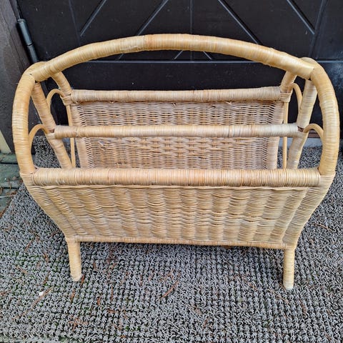 Hyväkuntoinen lehtiteline rottinkia, leveys/syvyys 47/30cm, korkeus 40cm.