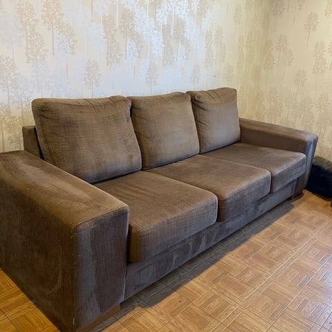 Kyseessä siis alle viikon vanha sohva (ovh 1200€). Pois kulmasohvan tieltä!