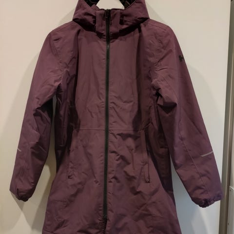 Helly Hansen purjehdustakki, koko 164. Paljon käytetty, mutta pitää edelleen täysin vettä. Vähän tummentumaa ja heijastimet kuluneet (ks. kuva).