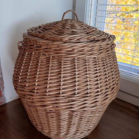 Iso pajukori 1960-luvun alusta. Todella hyväkuntoinen.Kori on 35 cm korkea, 59 cm syvyys ja 82 cm leveä . Pohja 35 cm syvyys, 53 cm leveys. Nouto.