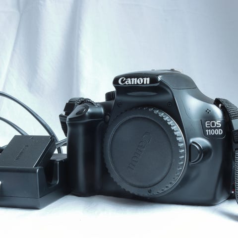 Canon EOS 1000D digitaalinen järjestelmäkamera sisältäen kuvassa näkyvät osat