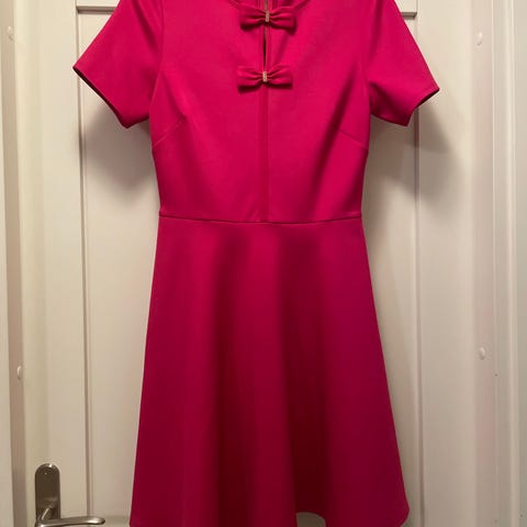 Selässä pitkä ruusukullanvärinen vetoketju.