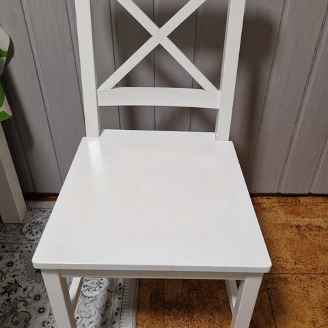 Myyn 5 valkoista Jyskin tuolia. Kaksi niistä on enemmän kuluneita. Hinta 10 euroa ( 5 kpl)