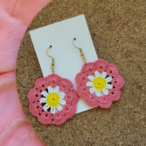 Korvikset on virkattu käsin 100% puuvillalangasta, kevyesti kovetettu.