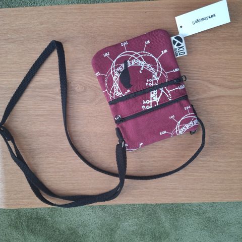 KLO design pieni laukku. Koko 15x12 cm. Edessä 2 vetoketjutaskua, ylhäältä suljetaan vetoketjulla. Ohut, säädettävä olkahihna.