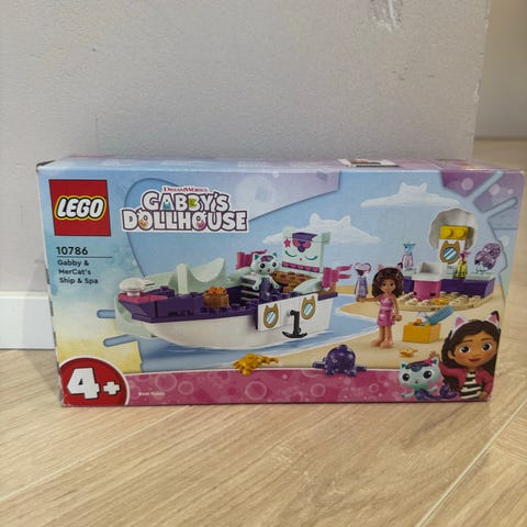 Lego 10786: Gabbyn ja Merikatin laiva ja kylpylä. Hahmot, osat, tarrat, ohje ja laatikko.