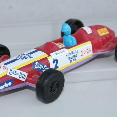 Muoviauto vintage Keke Bosberg 70-luku leikkiauto auto formula vanha Suomi