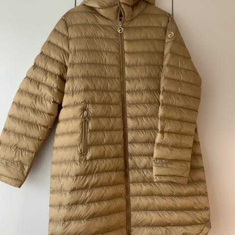 Ril'sin valkoinen kevyttoppatakki. Kaksisuuntainen vetoketju ja irroitettava vyö. Koko 36