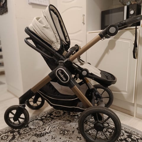 Emmaljunga NXT90 yhdistelmärattaat flat-istuimella ja Leatherette kankaalla. Paljon käytetyt mutta toimivat rattaat vuodelta 2018, joihin on juuri vaihdettu uudet renkaat. Jalkapeite sisältyy pakettiin. Työntöaisassa käytön jälkeä, ja aisan säätöä joutuu ajoittain kiristämään, mutta vaunut ovat täysin käyttökelpoiset, aina lämpimässä säilytetyt ja olleet meillä päivittäisessä käytössä.