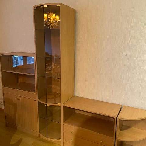 Toisesta lasiovesta lähtenyt pieni pala (ei itsellä haitannut käyttöä) muuten ok.