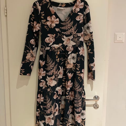 Rinnanympärystä hankala mitata kietaisuosan vuoksi. Olka-helma 98cm, hihan sisäpituus 43cm. Sujuvat kaupat, en varaa.