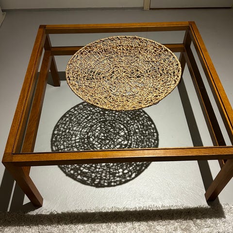 Puusepän tekemä kalanruoto sohvapöytä tammesta