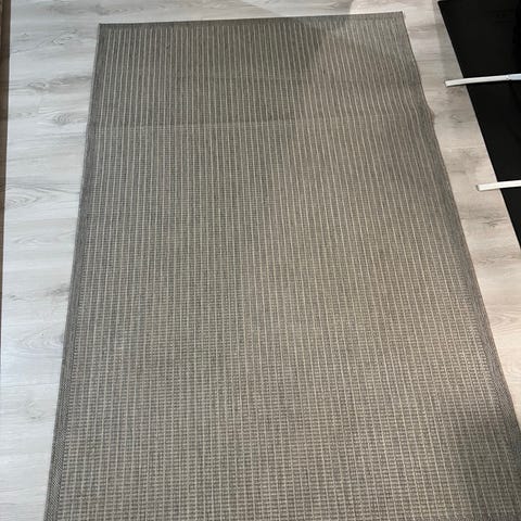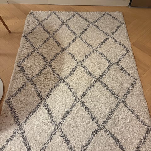 Jysk matto, koko 130x130 cm, väri vaaleanharmaa. Neliön muotoinen matto, jossa on pehmeä ja tiheä nukka. Käytön jälkiä