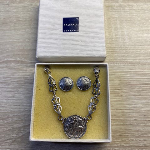 Vintage Kalevala Lilja rintaneula/riipus ja korvakorut