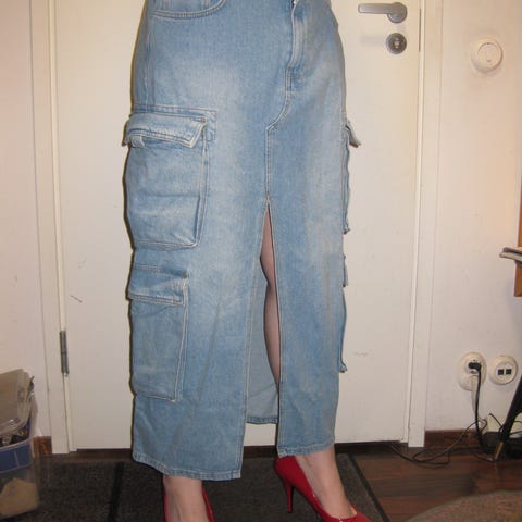 Lähes uusi cargohame. Reisitaskut ja joustava vyötärö kiristysnauhoilla. Koko arviolta L. Vyötärön leveys n. 37cm.