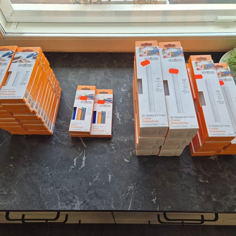 Tamiya-liimaa ei ole avattu eikä käytetty. Mr. Hobby -liimaa on käytetty, siitä on käytetty noin 10 %.