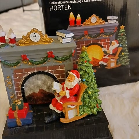 Puinen talo koriste. Takana luukku minkä saa auki. Valot sisällä, tarvitsee 2 AA-paristoa. En ole testannut toimivatko valot. Hieno koriste ilman valojakin. Ei tietoa mistä kulkeutunut meille. Talo on noin 50cm korkea.