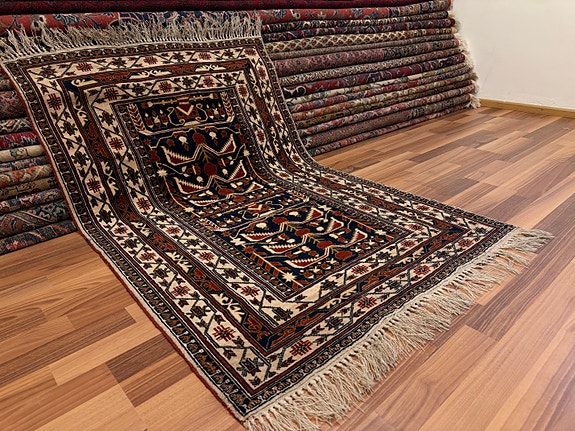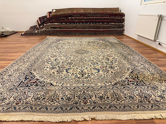 Noin 40–50 vuoden ikäinen, erittäin hienosti kudottu matto, lähes silkinpehmeä ja todella kaunis. Matto on kooltaan yli 6 neliömetriä. Se on yleisesti erittäin hyvässä kunnossa, mutta luonnollisesti ikänsä ja käytön vuoksi siinä voi olla hyvin pieniä elämisen jälkiä. Mikään näistä ei kuitenkaan haittaa maton käyttöä.
